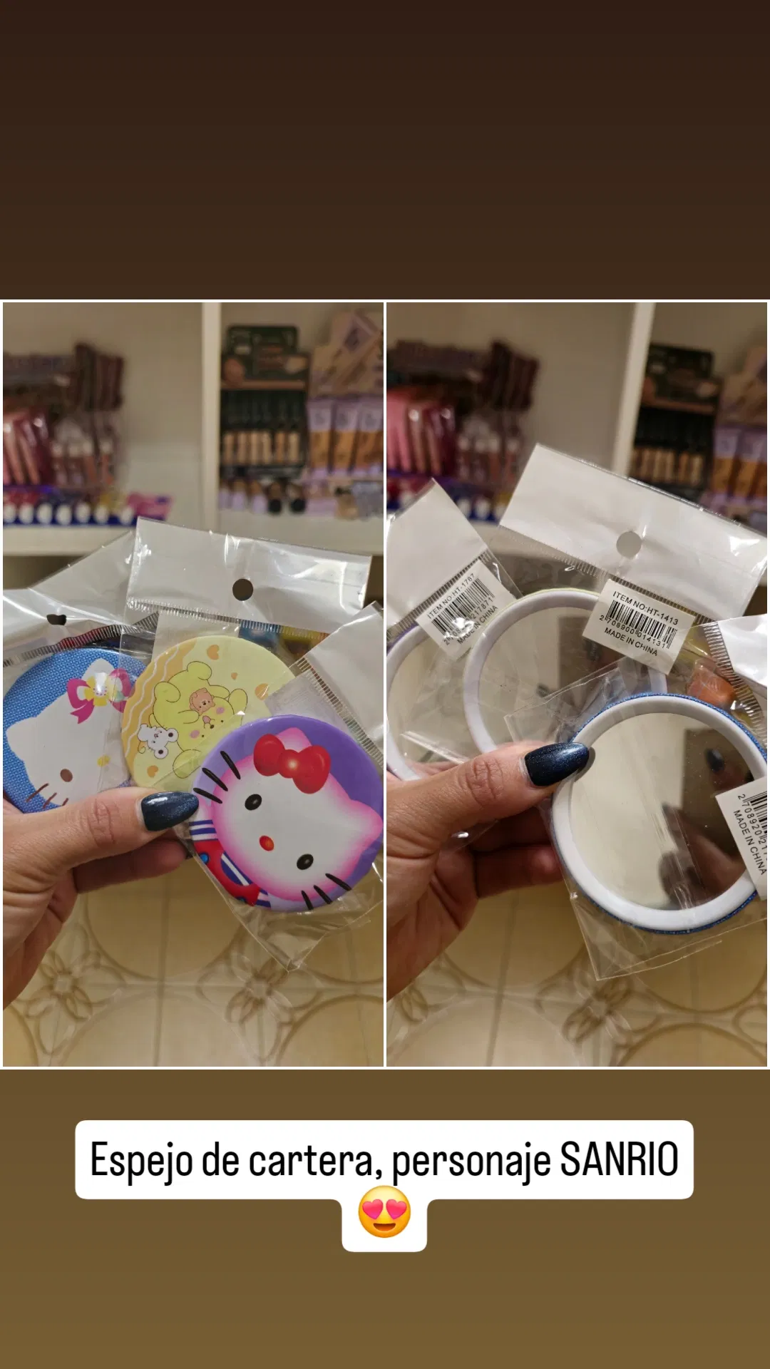 Espejo de cartera con personajes.